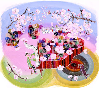 Emi Mariduki's work is beaaaautiful. Mainly using watercolor, she creates vividly colorful and surreal universes in her paintings.